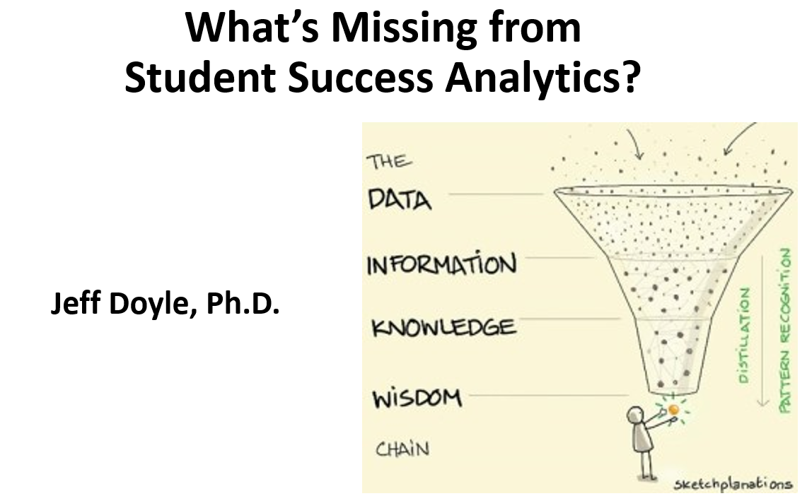 What is Missing From Student Success Analytics? – PPT slides 07/31/202408/28/2024Add a comment Share this: Click to share on X (Opens in new window) X Click to share on Facebook (Opens in new window) Facebook More Click to share on LinkedIn (Opens in new window) LinkedIn Like Loading...