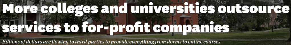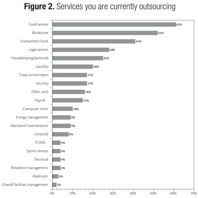 Thirty years ago in higher education, outsourcing was a curse word and only used at some universities in relation to food services and bookstores. Since that time, universities have realized that 1) they are not the experts in managing many of the services they provide on college campuses, 2) there are many companies that can manage non-core services more efficiently, and 3) there are substantial savings that can emerge by carefully creating contracts that expand outsourcing.