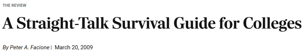 In March of 2009, Peter A. Facione, who is today one of the founders of Insight Assessment, wrote the following article. He had been a provost at Loyola University in Chicago and worked for many other universities.