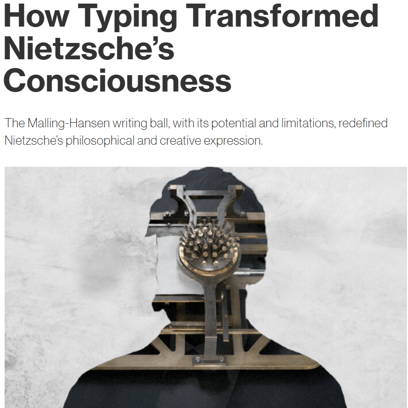 When the typewriter first debuted, writers like Friedrich Nietzsche argued that handwritten text had an irreplaceable quality—a reflective depth that typewritten text simply could not replicate. Forced to switch to a typewriter as his eyesight failed him, Nietzsche observed with frustration that his writing style had actually depreciated as a result. He remarked that the mechanical nature of typing seemed to influence the rhythm and content of his thoughts, making his prose more abrupt and abridged. He argued that writing by hand allowed ideas to flow more thoughtfully, while typing was comparatively “impersonal … It deprives the piece of work of its pride, of the individual goodness and faultiness … that is to say, of its little bit of humanity.”