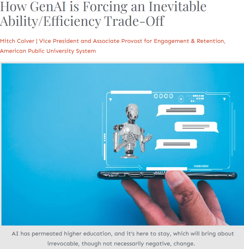 Loved this section of an article by Mitch Colver, Vice President and Associate Provost for Engagement & Retention, American Public University System, on How GenAI is Forcing an Inevitable Ability/Efficiency Trade-Off