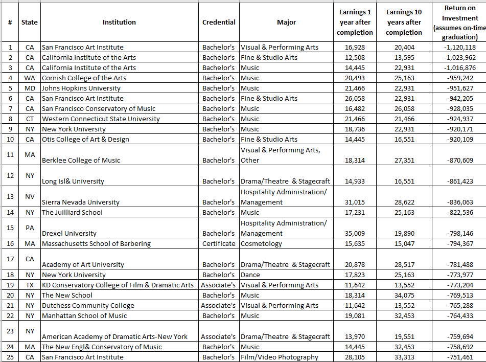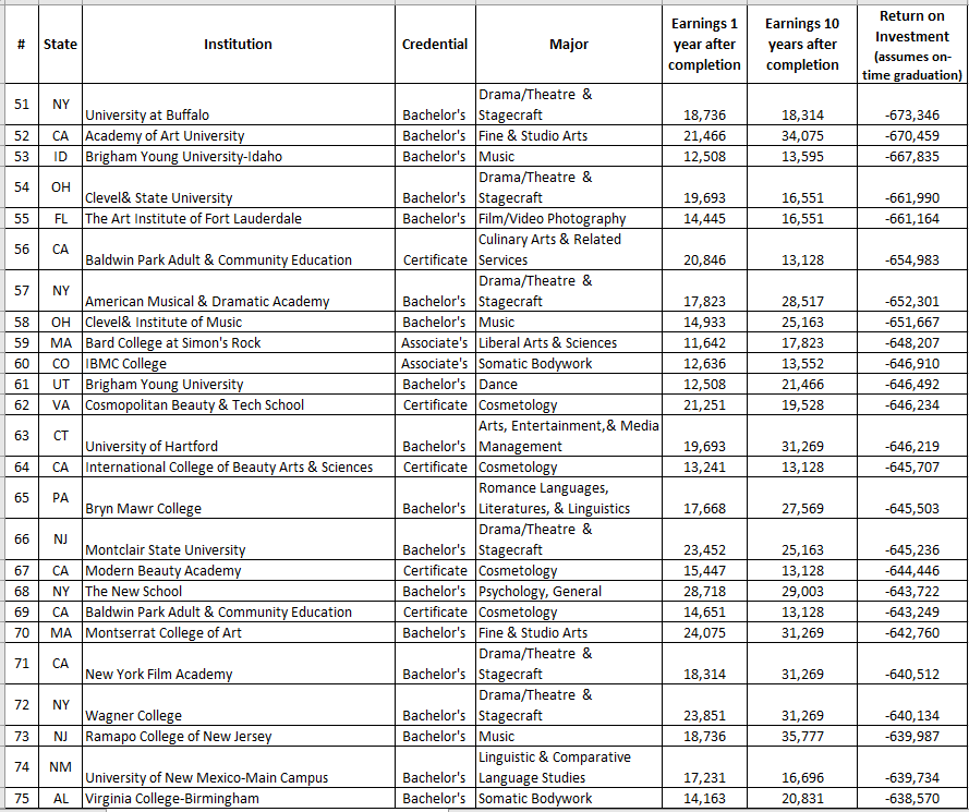 - Jewish Seminaries – 25% (They were 25 of the top 100 but I didn’t even list in the table below them since they are so small and there were so many listed – thus my list of “top” 75)