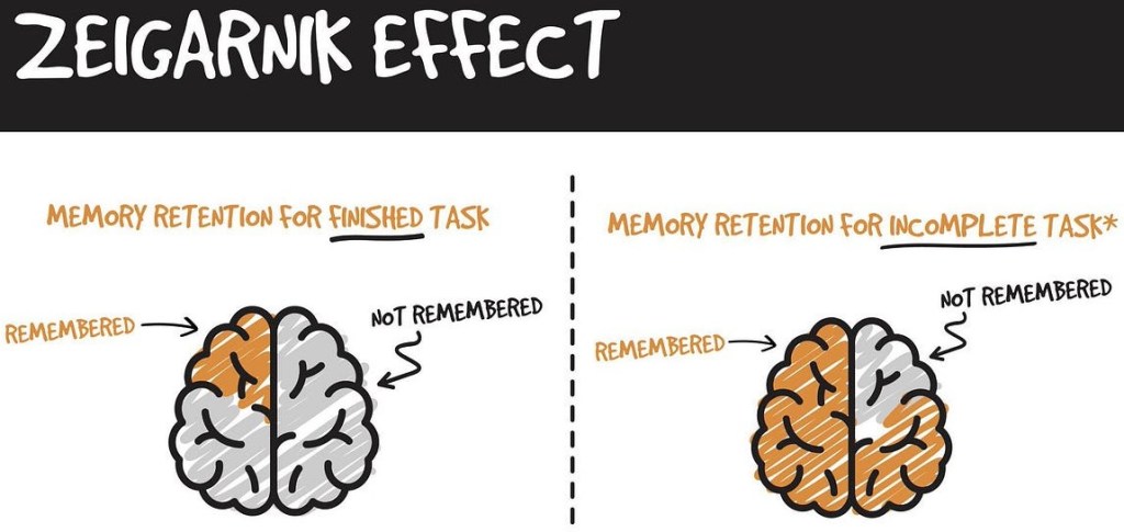 Zeigarnik Effect: That uncompleted or interrupted tasks are remembered better than completed ones.