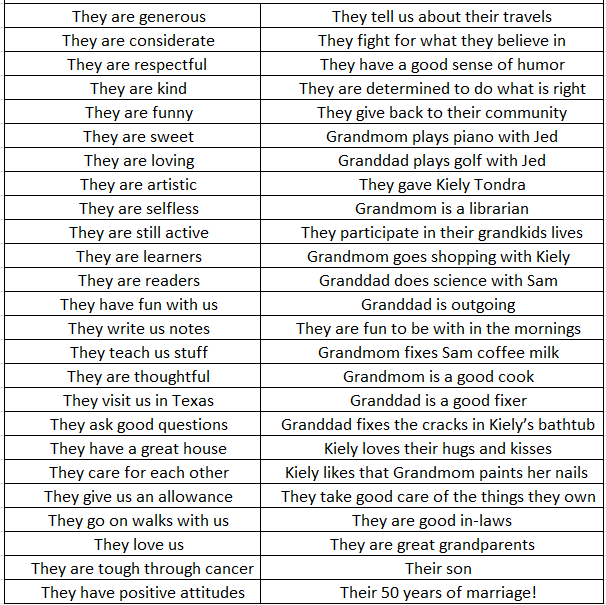 50 Things Kiely, Sam, Jed, and Kim Love about Grandmom and Granddad
