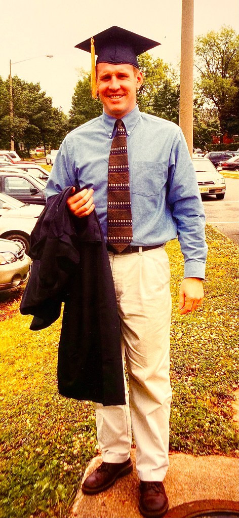 Barnabus and Me at Kim’s ApartmentPool at Kim’s ApartmentFishing with Uncle Bob and KimFishing with Uncle Bob and KimDowntown Boston Thoreau’s Cabin – Boston Trip to Visit Jeff & Mary BurtonCanoing in Boston areaBarnabus and Me at Kim’s ApartmentDoyle Brothers Luray Golf Outing Laura, Chris, and me in SalisburyNear Roanoke, VirginiaOn Honeymoon!Disneyworld on Honeymoon!Animal Kingdom in Orlando on HoneymoonReddish Knob – 1 Year Post ProposalAt our home in Crozet (1081 Burch’s Creek Rd)Inside our Crozet homeMy buddy, BarnabusMy buddy, Barnabus and me, 1st Christmas married!Walking Barnabus in SalisburyAt my sister’s wedding in VirginiaSurprise 30th Birthday Party at Golden Corral!In Dad’s ’64 Spitfire Bahamas in 2000Bahamas in 2000Getting my Ph.D.Getting hooded for Ph.D.Getting my Ph.D.Our first house purchased, August 2001!